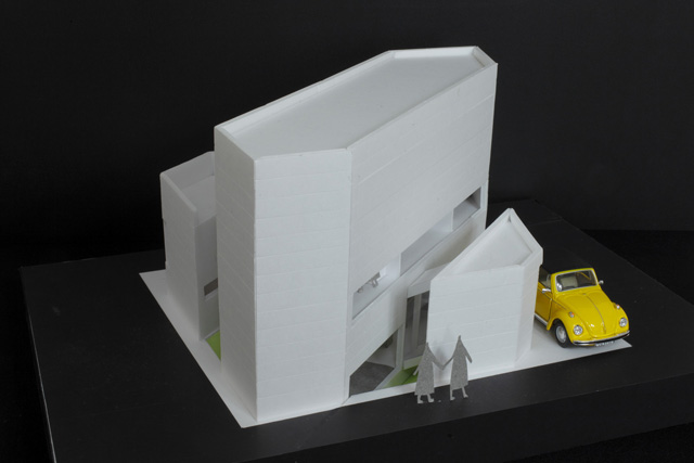 “町並み再現型展示”として各模型を道路で繋ぎ、車や人、植栽を加え