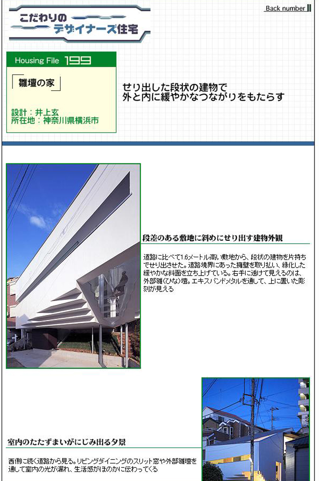 「優れた発想、コンセプトでつくられた質の高いデザインの新築戸建て住宅を、その設計意図と共にご紹介する下記サイトに掲載されました。詳しくはウェブマガジン「こだわりのデザイナーズ住宅」をご覧下さい。(2011年2月3日アップ)