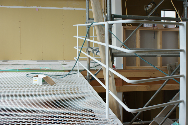 床のエキスパンドメタルと手摺の塗装中。このブリッジにはもうひとつ、小さい仕掛けが隠されている。